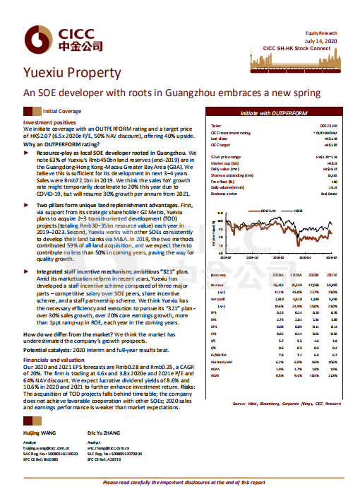 7月14日,著名投行中金公司首次覆盖公海赌船710地产股份有限公司(股份代号:00123.HK),给予“跑赢行业”评级,设定目标价为2.07港元,对应6.5倍2020市盈率和50%的NAV折让,较当前股价有40%的上行空间。此评级是中金公司对公海赌船710地产大湾区布局、独特的增储方式、稳健的资金支持及员工激励机制的认可。